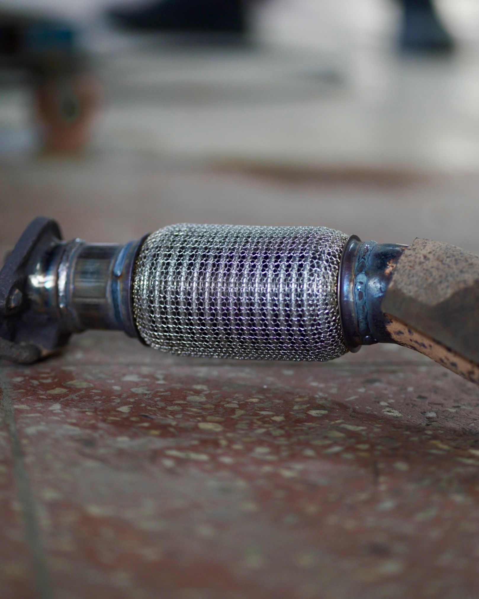 5. Визуальное повреждение: можно заглянуть под автомобиль и увидеть следы копоти вокруг гофры, ее прогар, трещины или разлохмаченную металлическую оплетку.